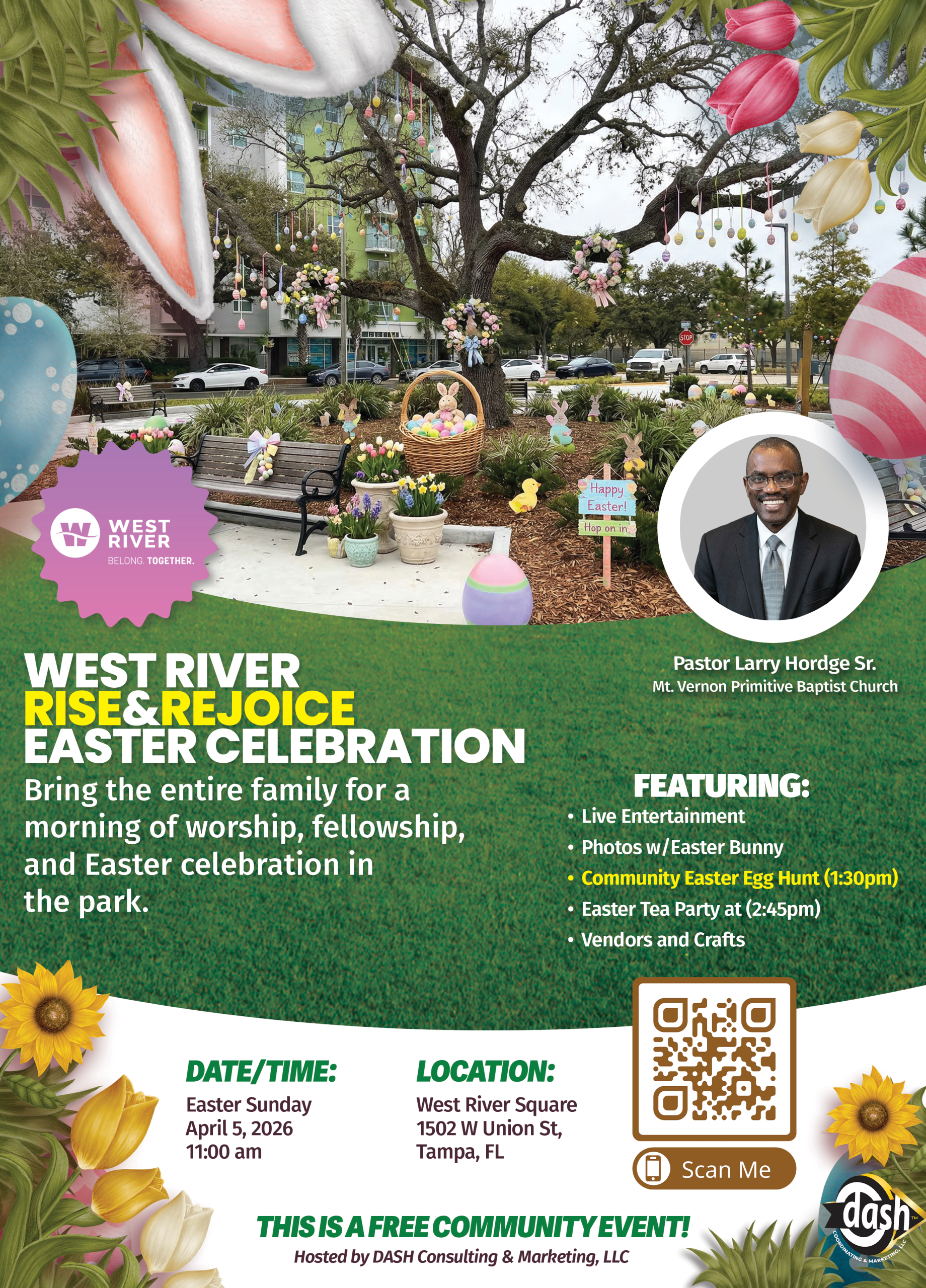 West River Square 1502 W. Union St., TampaBring the entire family for a morning of worship, fellowship, and Easter celebration in the park. Morning worship will be led by Pastor Larry Hordge Sr. and Mt. Vernon Primitive...